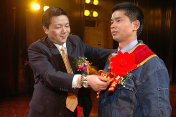 公司總經(jīng)理?xiàng)钴娤?007年度“總經(jīng)理特別榮譽(yù)獎(jiǎng)”獲得者陳生恒授獎(jiǎng)