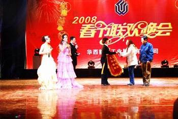 晚會(huì)在一片歡歌笑語(yǔ)中結(jié)束,公司領(lǐng)導(dǎo)和嘉賓們走上舞臺(tái),和演員們握手致謝,并再次祝福全場(chǎng)員工春節(jié)快樂(lè)